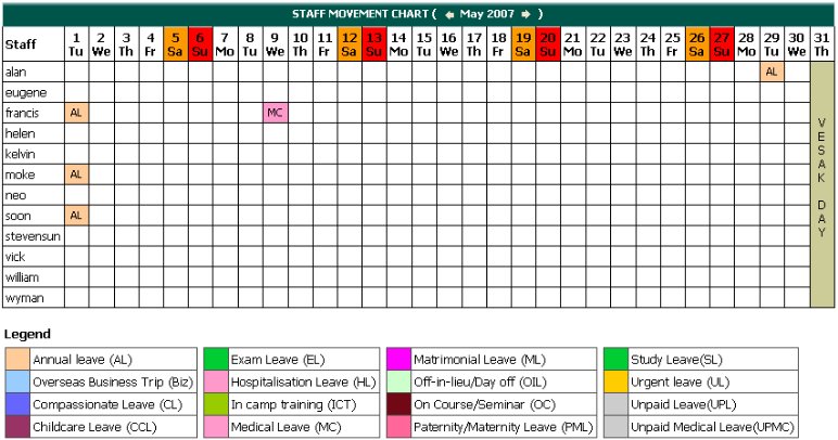 Staff Movement chart is a solution that can runs independently or integrate with Leave Application Software.