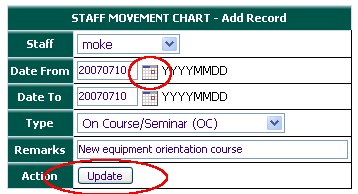 -> Click on Month View on the Staff Movement Chart Menu to view the Chart