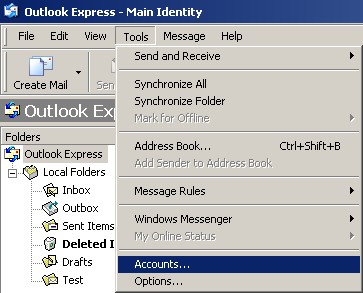 Click --> Tools --> Accounts